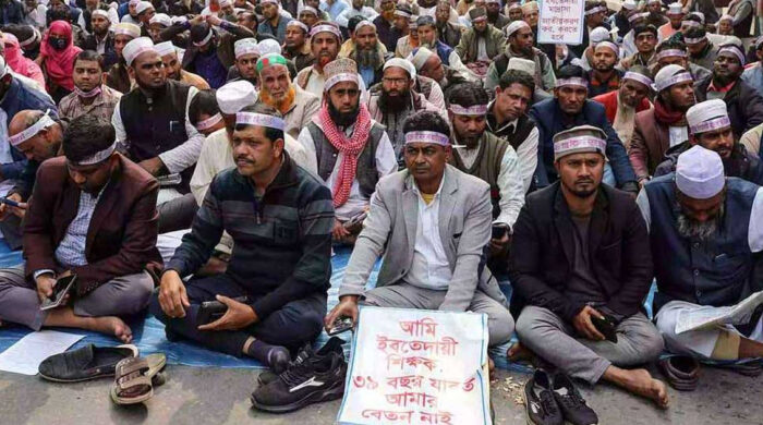 চাকরি জাতীয়করণসহ ৫ দফা দাবিতে ১৯তম দিনের মতো ইবতেদায়ী মাদরাসা শিক্ষকদের আন্দোলন চলছে। শুক্রবার (৩০ অক্টোবর) সকাল থেকেই জাতীয় প্রেসক্লাবের সামনে অবস্থান নিয়ে বিক্ষোভ করছেন শিক্ষকরা। আন্দোলনরত শিক্ষকরা বলেন, আমলাতান্ত্রিক জটিলতা