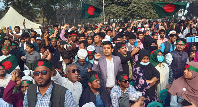আগামী ১৫ জানুয়ারির মধ্যে জুলাই অভ্যুত্থানের ঘোষণাপত্র জারির দাবি জানিয়েছেন বৈষম্যবিরোধী ছাত্র আন্দোলনের আহ্বায়ক হাসনাত আব্দুল্লাহ। মঙ্গলবার (৩১ ডিসেম্বর) ‘মার্চ ফর ইউনিটি’ কর্মসূচিতে একথা বলেন তিনি। সচিবালয়ে আগুন লাগার ঘটনা